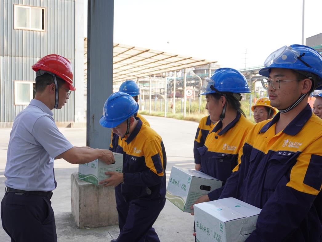 8月22日下午,重慶化醫(yī)集團(tuán)黨委委員、副總經(jīng)理,渝化新材料黨委書記、董事長(zhǎng)周衛(wèi)平到聚獅新材料為高溫酷暑下奮戰(zhàn)在生產(chǎn)一線的員工送去清涼慰問品。